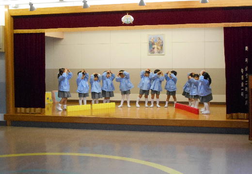 ゆり組は、おゆうぎ室で劇の練習をしました。