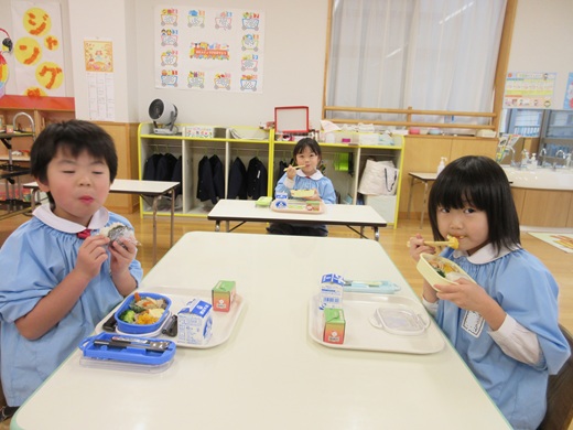 きょうは大好きなお弁当🍱の日!「お弁当大好き!」「おいしいね!」